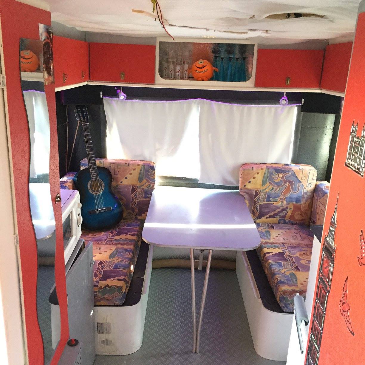 merci a tous pour votre soutien d' autre photo prendrons place car maintenant j' ai mis du simili cuir au plafon je vais refaire tout les coussin en simili blanc aussi