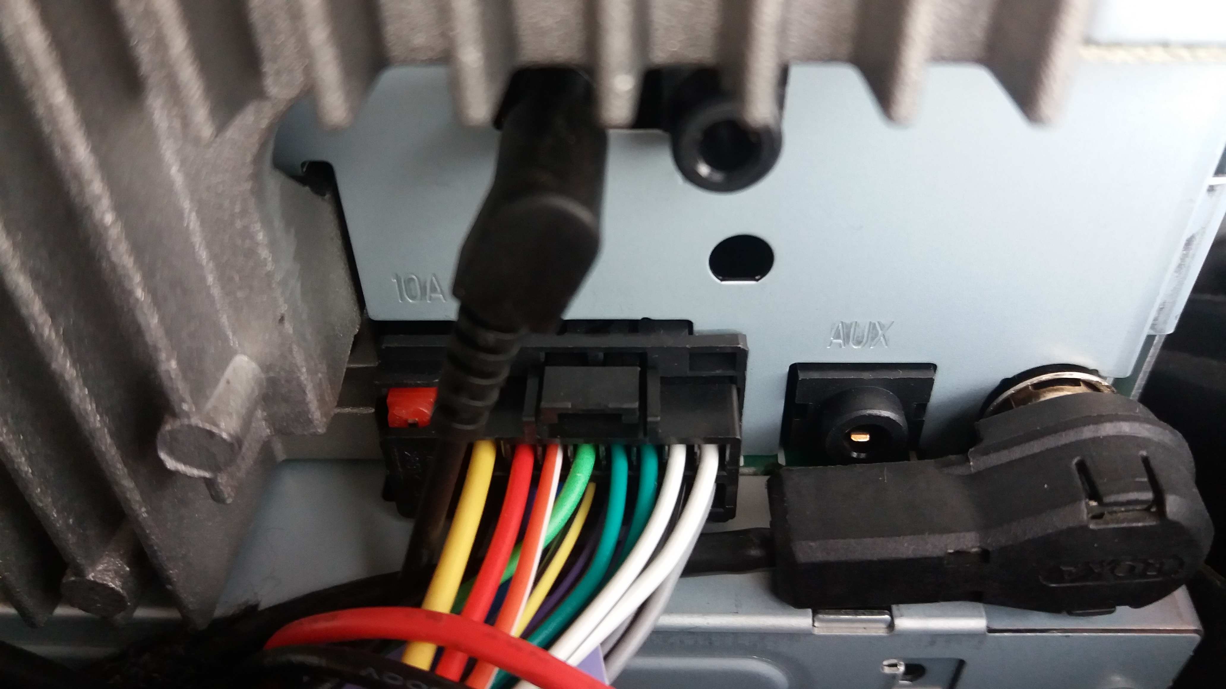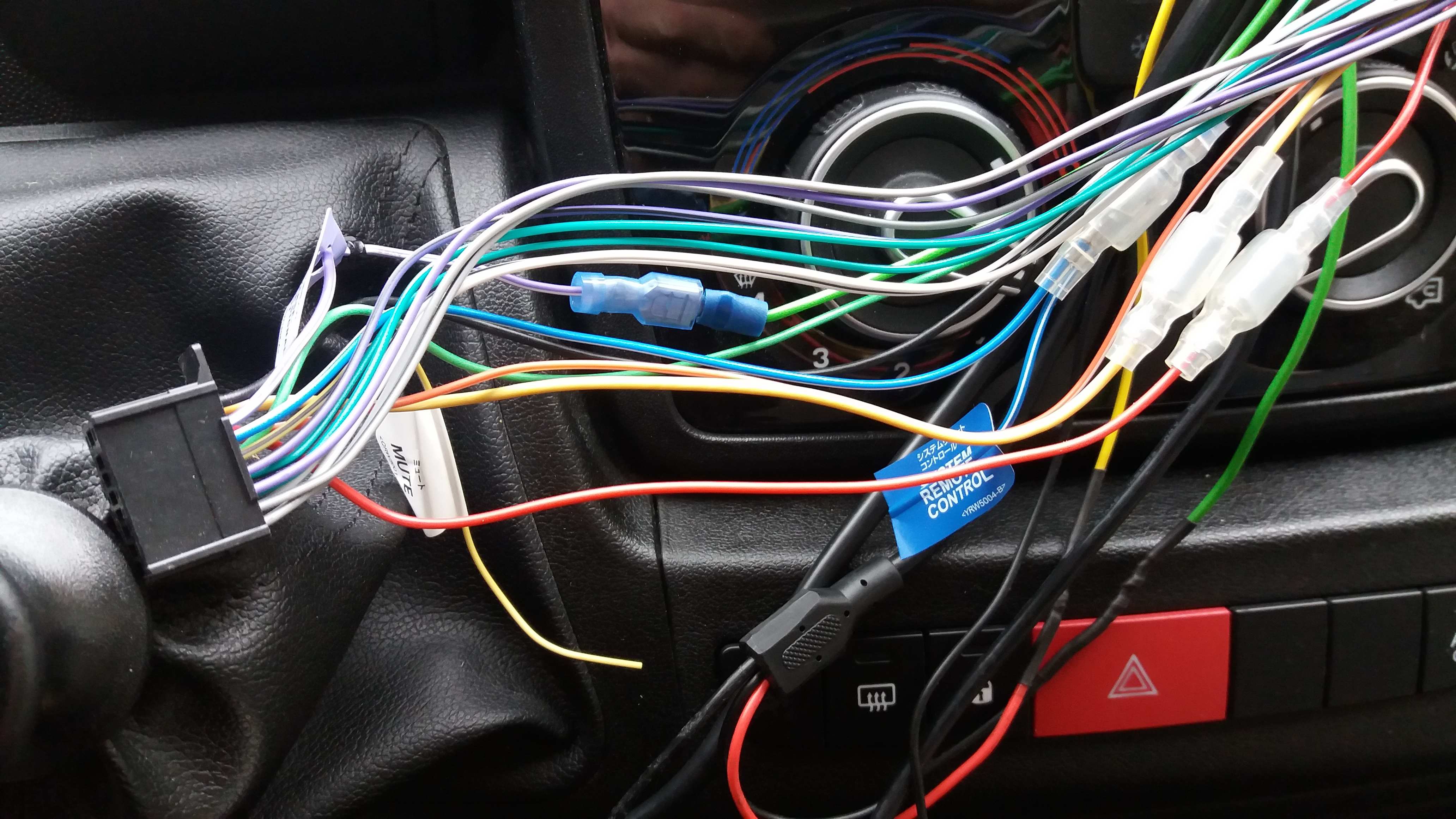 J’ai extrait l’auto radio de son emplacement. Quelques photos valant mieux qu’un long discours je vous joins deux vues du faisceau et un « petit schéma » du futur branchement. En résumé (et sauf erreur de ma part) :