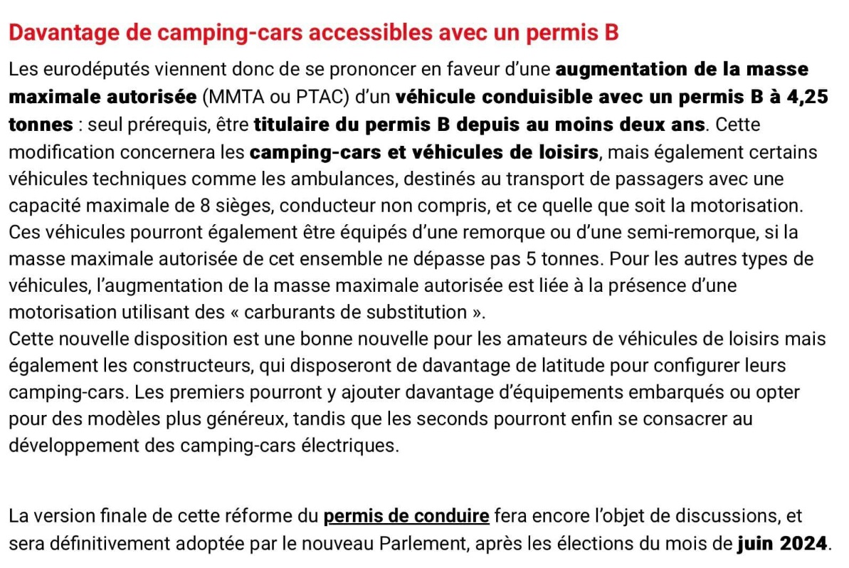 Re: Conduire un camping-car poids lourd avec un simple permis B : bientôt la fin