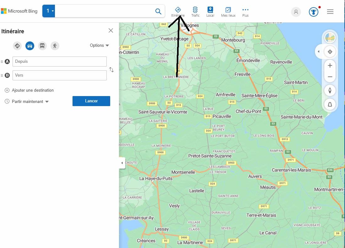 tu ouvres "bing itneraire " et tu tombes sur cette page.