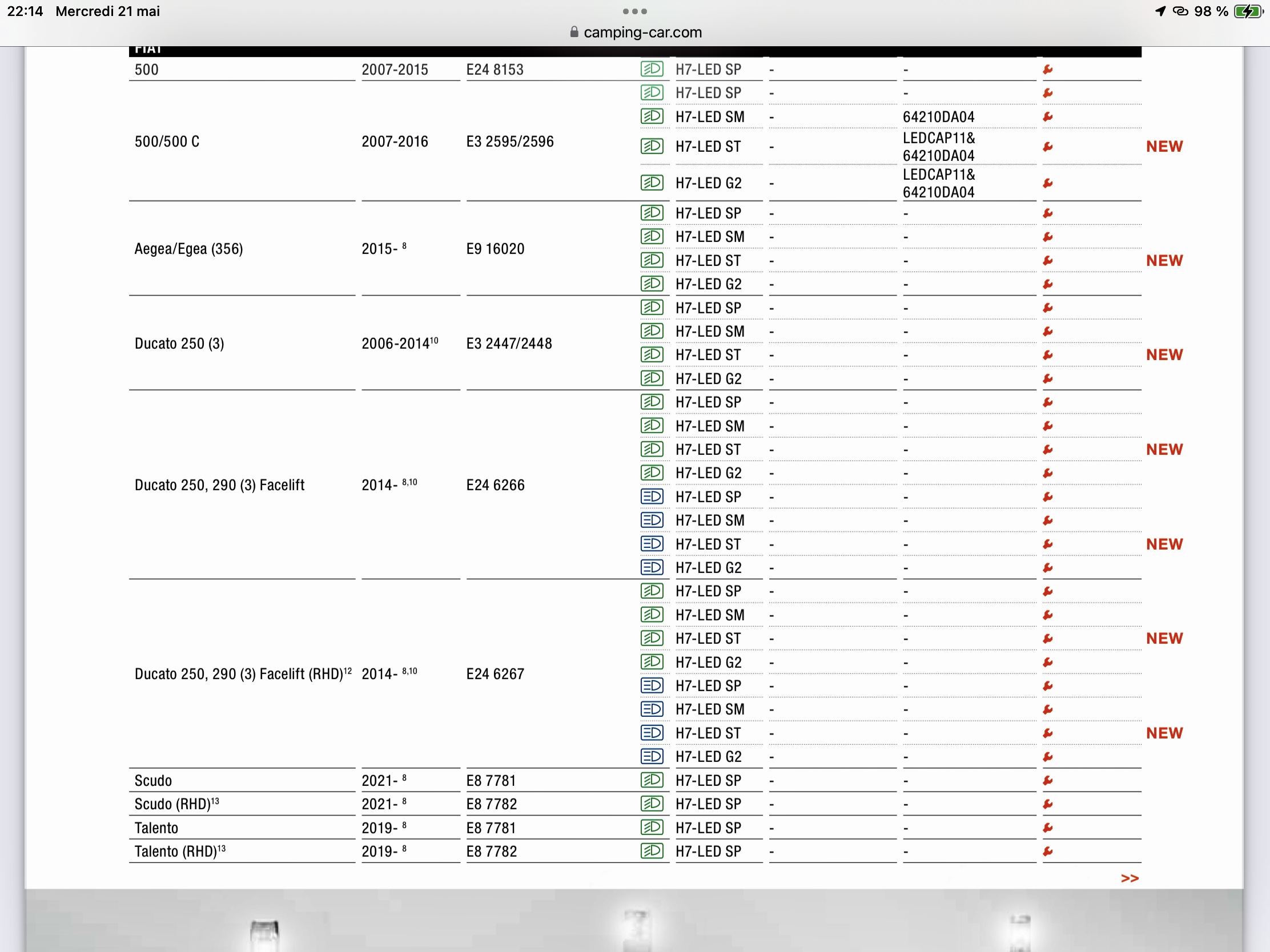 Gilles j’ai regardé sur le site OSRAM Lien que tu as mis) sur le pdf qu’ils joignaient, pour le fiat ducato c’est bien spécifié le,modèle osram qu’il faut.