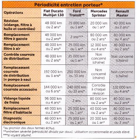 Re: periodicite entretien porteur fiat ford mercedes renault