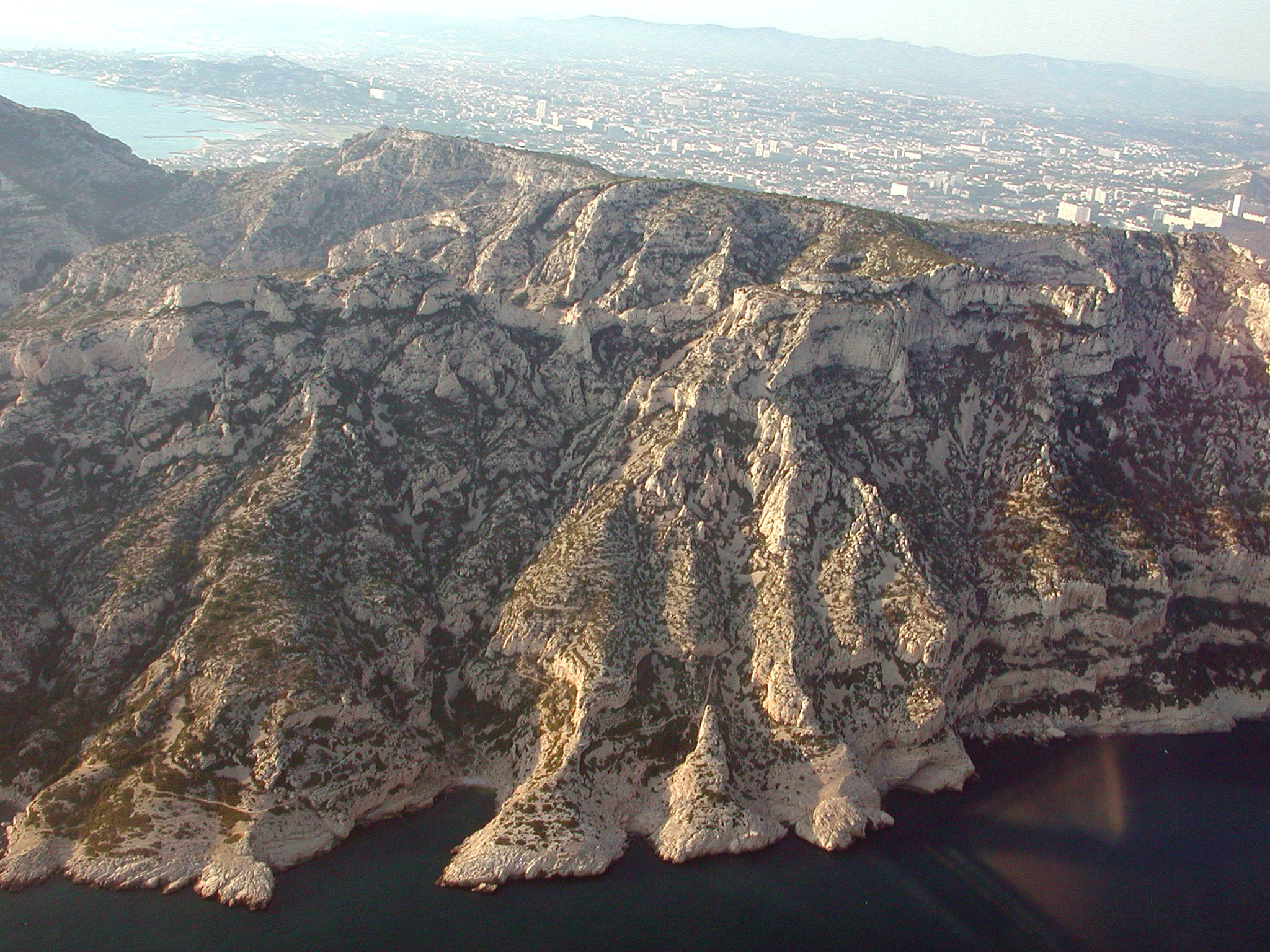 les calanques vu du ciel un des plus beaux paysages que j'ai survolé, la ville derriere c'est marseille