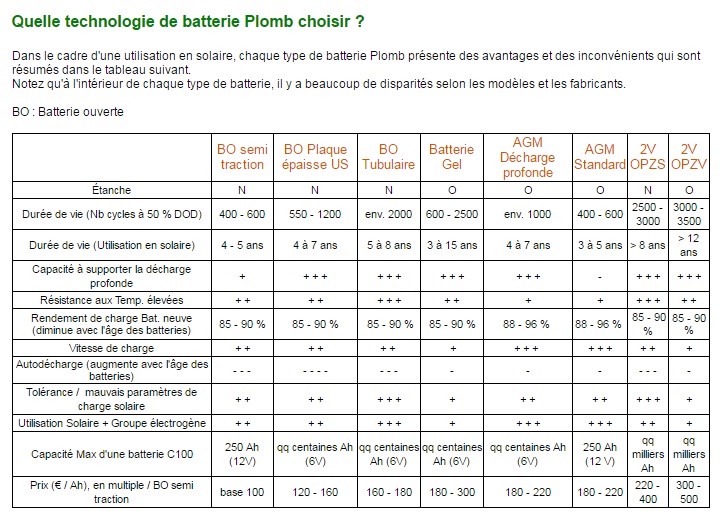 Voici un tableau simple mas qui résume un peu tout sur les batteries: