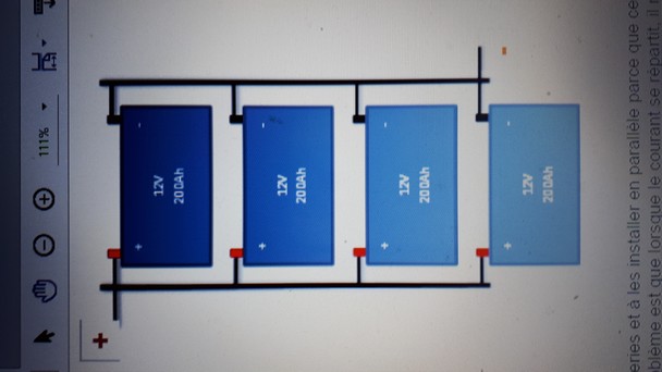 Ce branchement a pour but de charger et decharger les deux batteries à l'identique pour qu'elles soient parfaitement utilisées et équilibrées de la même façon