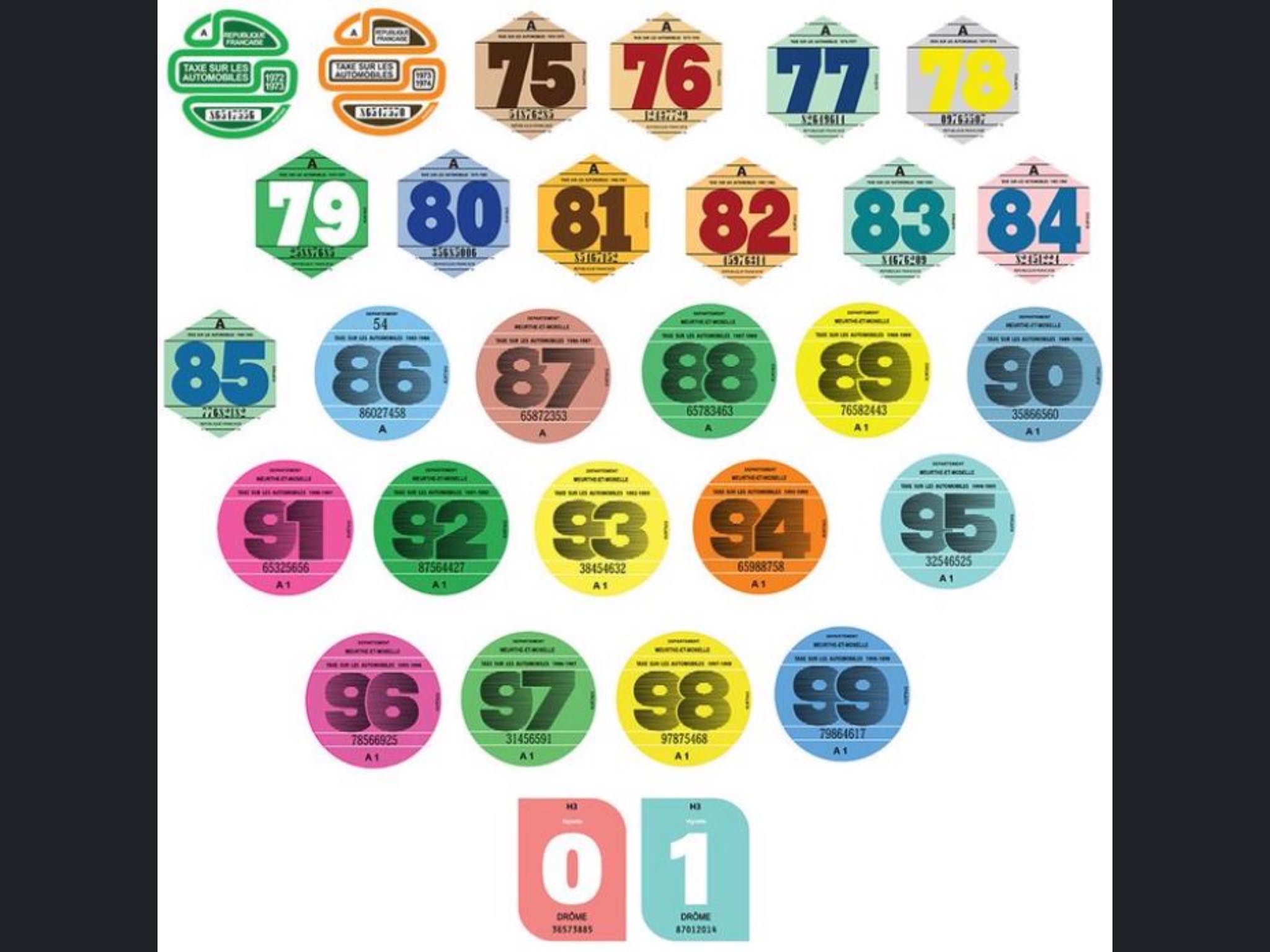 La vignette existait depuis plus longtemps. Elle était en carton dont la couleur changeait chaque année, rangée dans le portefeuille pour les contrôles de la maréchaussée ou vers la fin à placer dans une pochette dans le coin du pare-brise (il y avait de la place : une seule vignette au lieu de 3 aujourd'hui).
