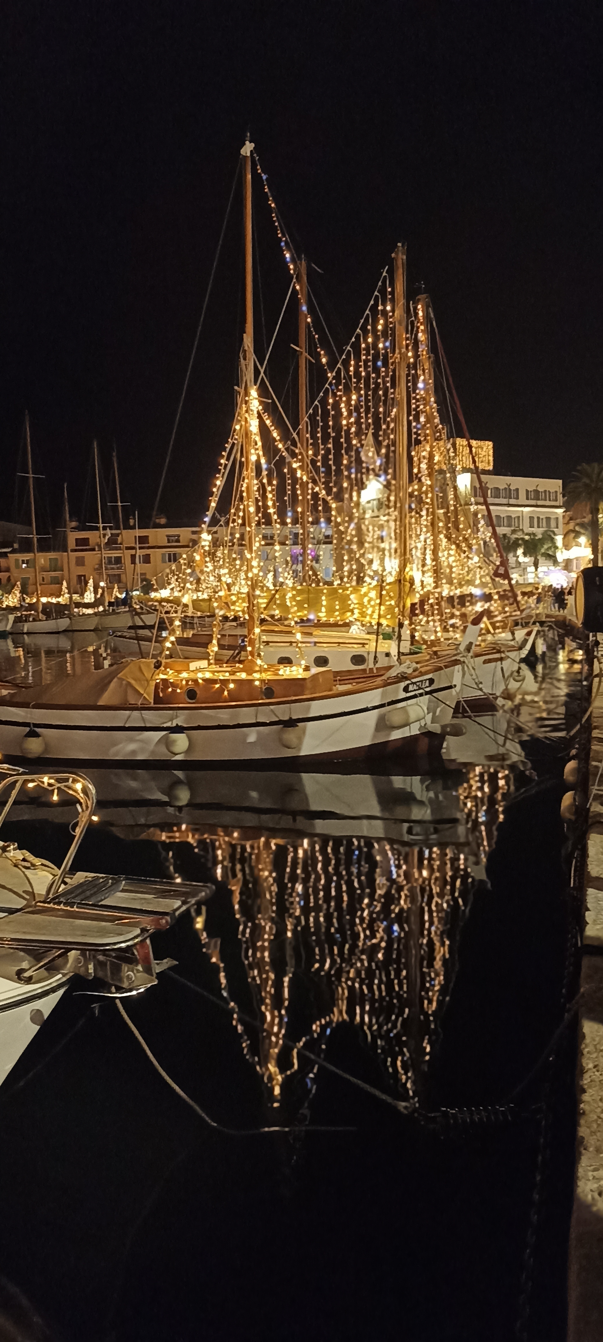 Les illuminations du port de Sanary. Mais attention , l'entrée dans la ville bouchonne....