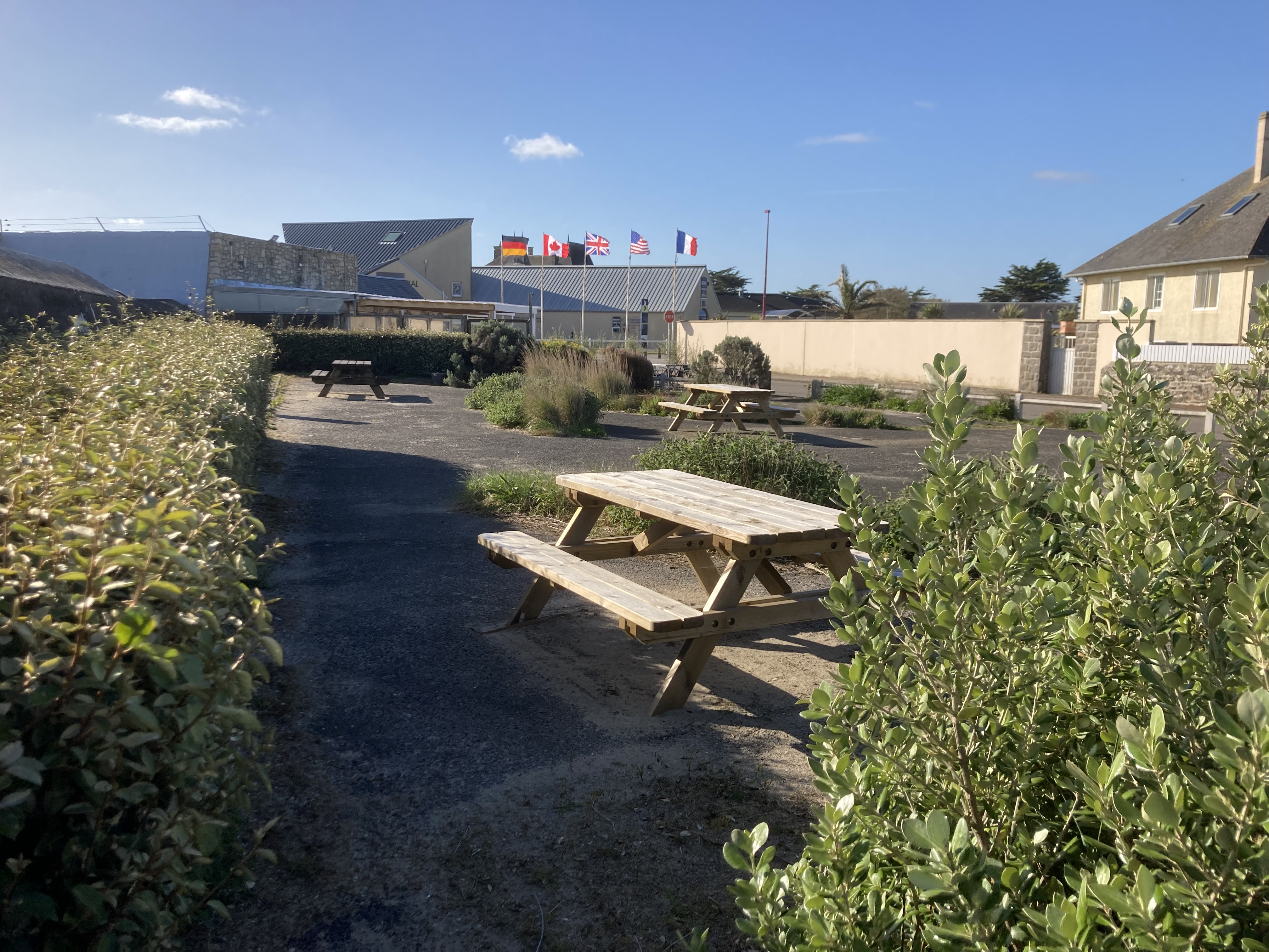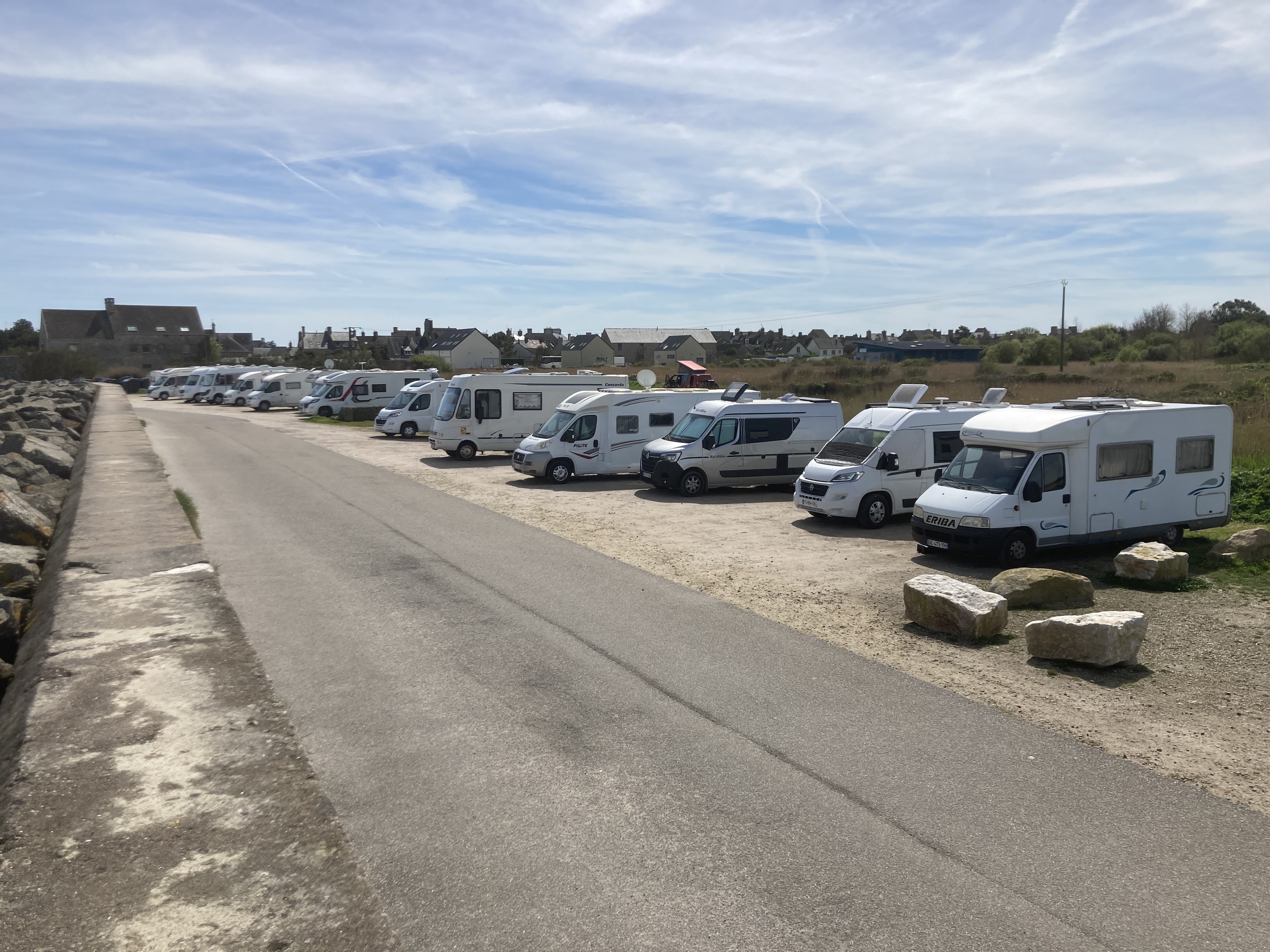 La petite ville de bord de mer de QUINEVILLE met à disposition un parking gratuit / nuit pour lés visiteurs et ceci en plein centre du bourg et à côté de la plage