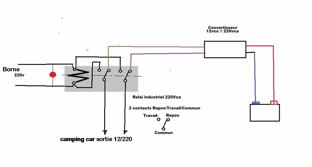 Ma question: Comme nous refaisons tout le circuit électrique, je souhaite que toutes les prises du camping-car puissent être raccordées au convertisseur. Le convertisseur va donc être raccordé au disjoncteur 30mm mais alors si je branche le camping-car sur le 220 et que j'ai oublié de couper le convertisseur, que va - t'il se passer puisqu'il y aura 2 arrivées différentes de 220 en même temps? Je pense que cela peut poser un problème????