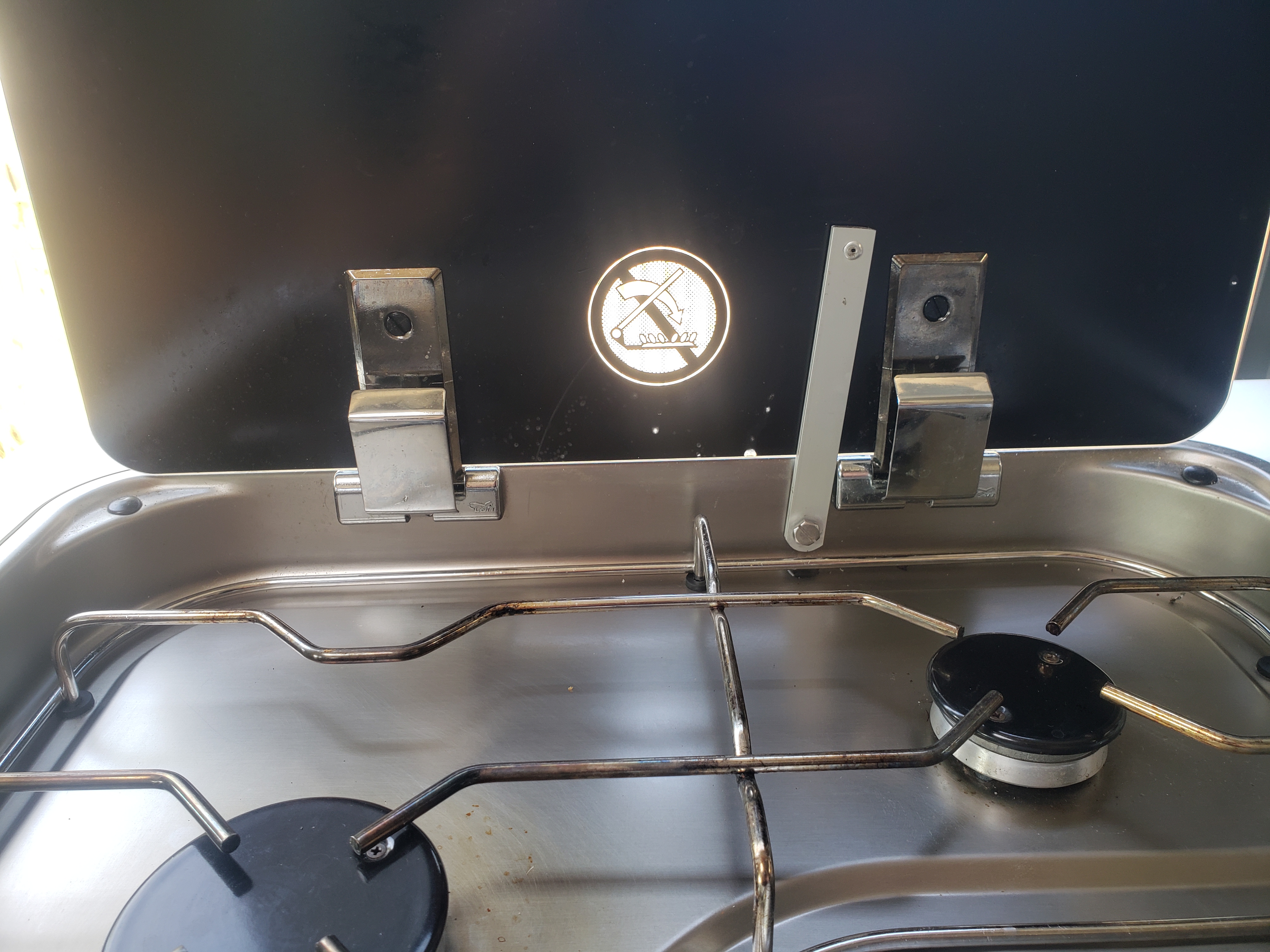 Tu payes ton fourgon la peau des fesses, et dès que tu es un peu en pente ou qu'il y a un coup de vent, ton couvercle en verre de ta table de cuisson se casse la margoulette, emmenant avec lui ce qui est en train de chauffer... Et pan, la cafetière sur la banquette juste en face!